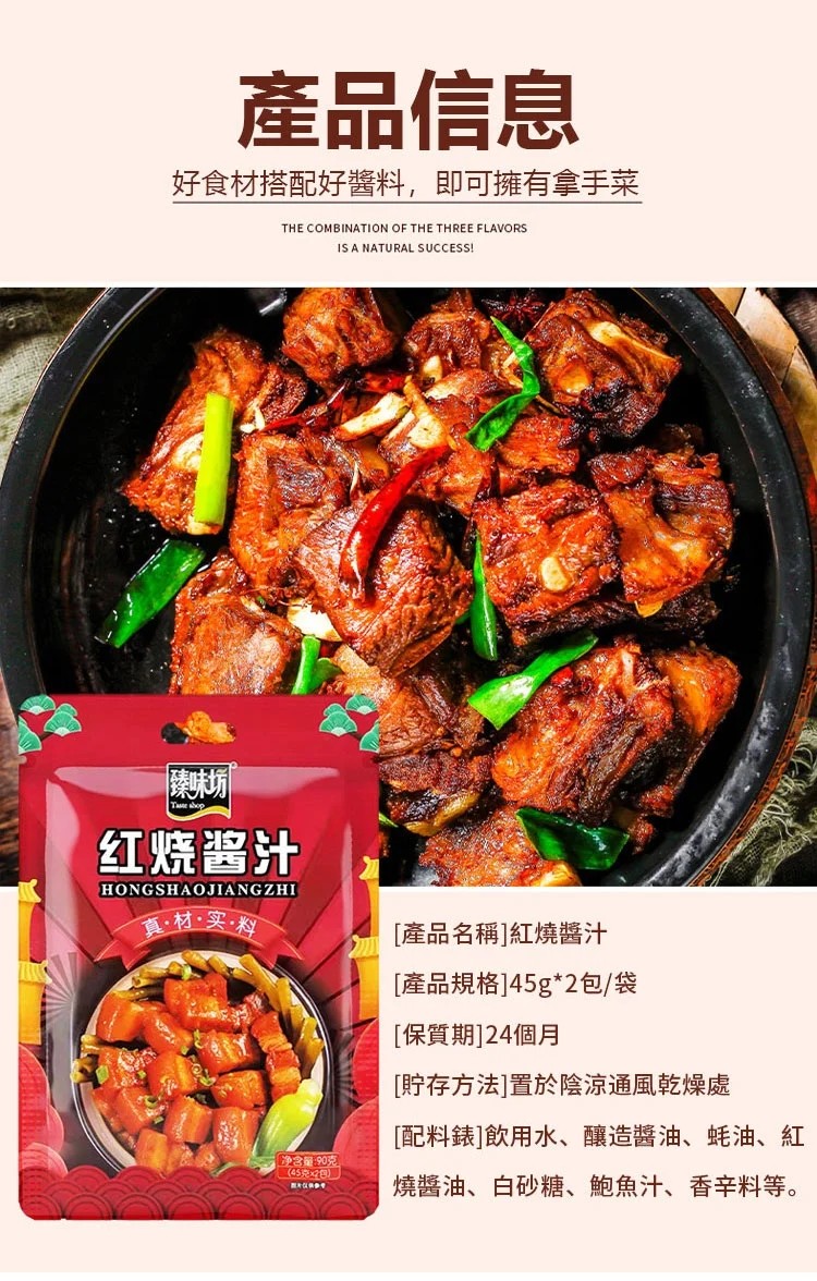 紅燒醬汁調料包在家輕鬆享味濃料足/色澤紅亮,做法簡單/秒變大廚!!!