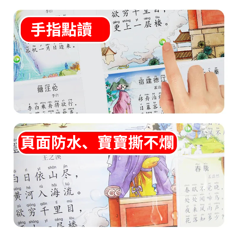 第 1 件 : 【全台免運】小儒童 會說話的唐詩三百首,早教手指觸摸點讀書,兒童唐詩啟蒙有聲讀物,現訂購贈送USB充電線【貨到付款】